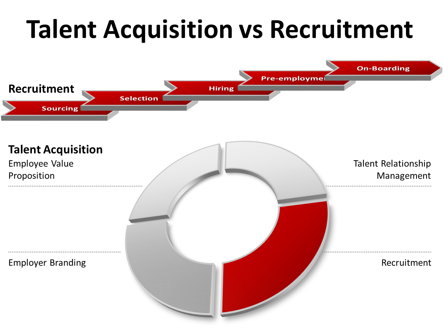 - Talent Acquisition is long-term planning and strategic.