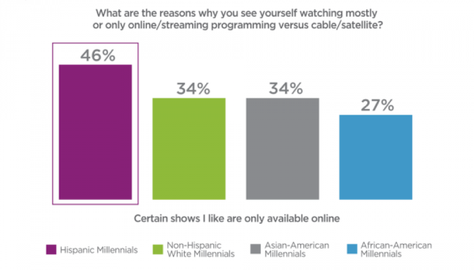 HMP discovered the top reason why! Latinos are more likely than any other group (at 46%) to watch something online if that’s the only place they can find a show.